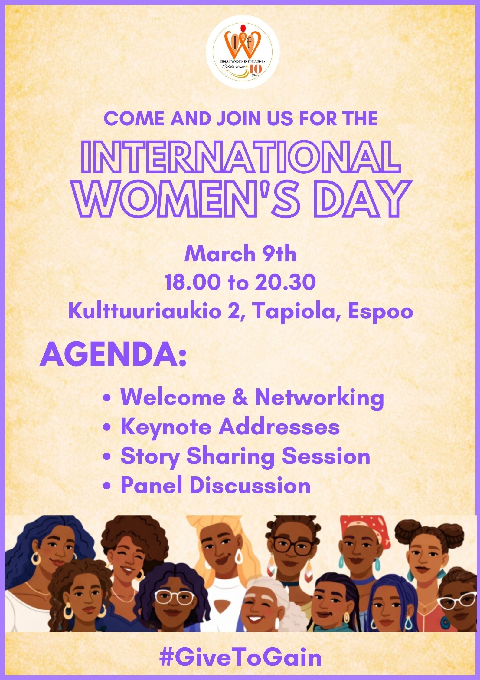 Indian Women in Finland ry is proud to announce their 2026 Women's Day event this year on 9th March, from 18.00 to 20.30 at Kulttuuriaukio 2, Tapiola, Espoo. Stay Tuned for more details!